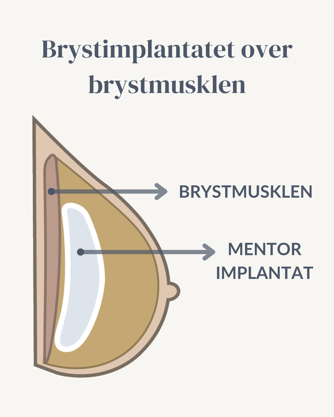Vi har stor erfaring med, og er stærke fortalere for at placere brystimplantatet over brystmusklen, dels da det uden sammenligning giver det flotteste og mest naturlige resultat, men også fordi det er os magtpåliggende at brystoperationn ikke må være til unødvendig gene.